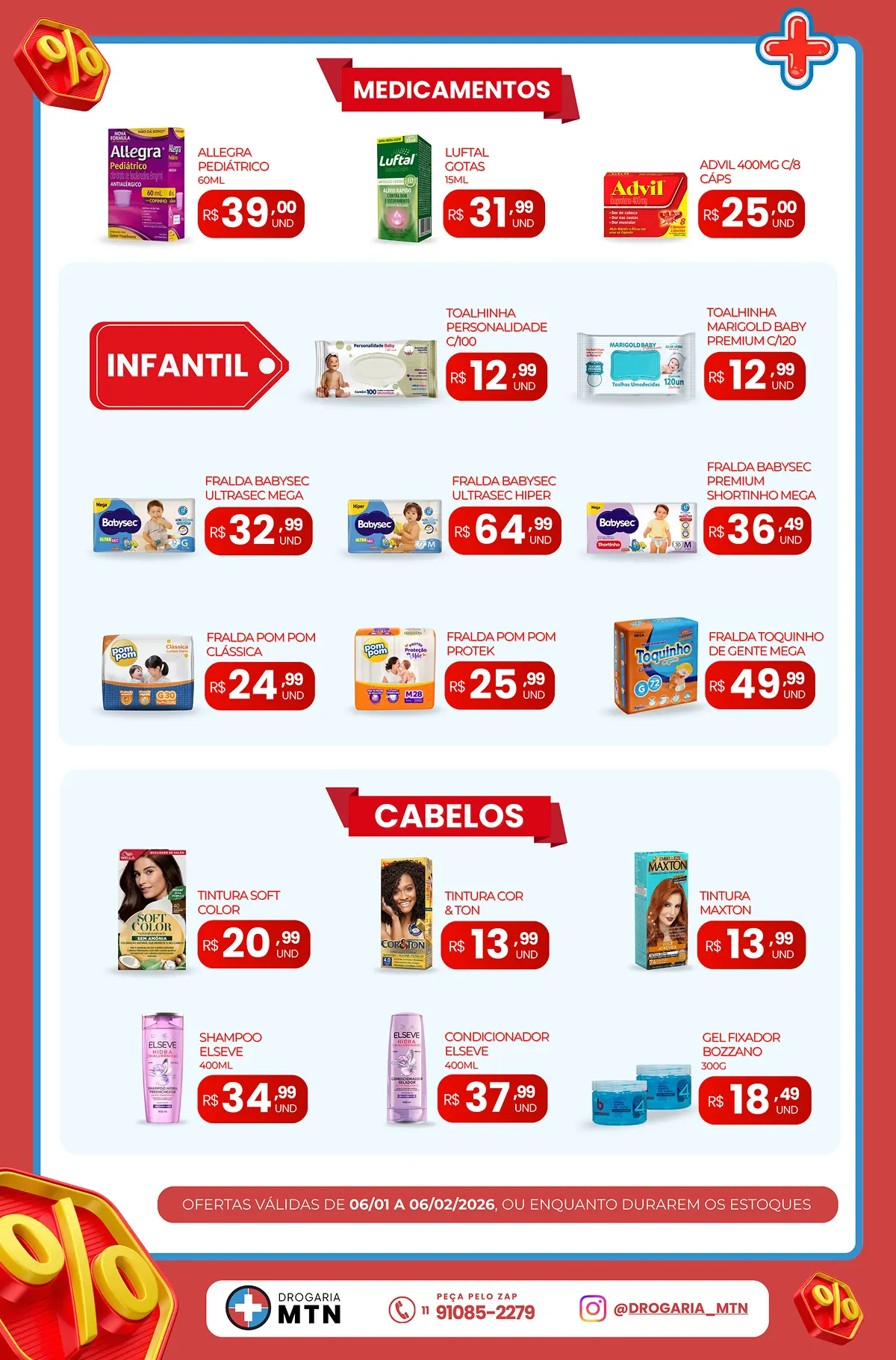 A Drogaria MTN nasceu com o propósito de entregar mais do que produtos: queremos oferecer cuidado, respeito e confiança. Com anos de atuação, construímos uma relação próxima com a comunidade, trazendo medicamentos, perfumaria, produtos infantis e muito mais — sempre com atendimento humanizado e preços acessíveis.